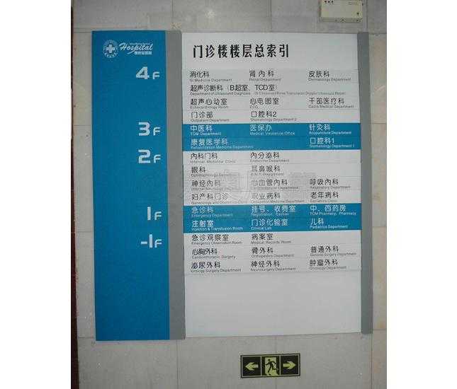 服務內容:醫院樓宇標識,道路指引標識,醫院戶外總圖,樓層索引,平面分布圖,專家介紹欄,宣傳欄,功能室,樓層號,科室名稱牌等
